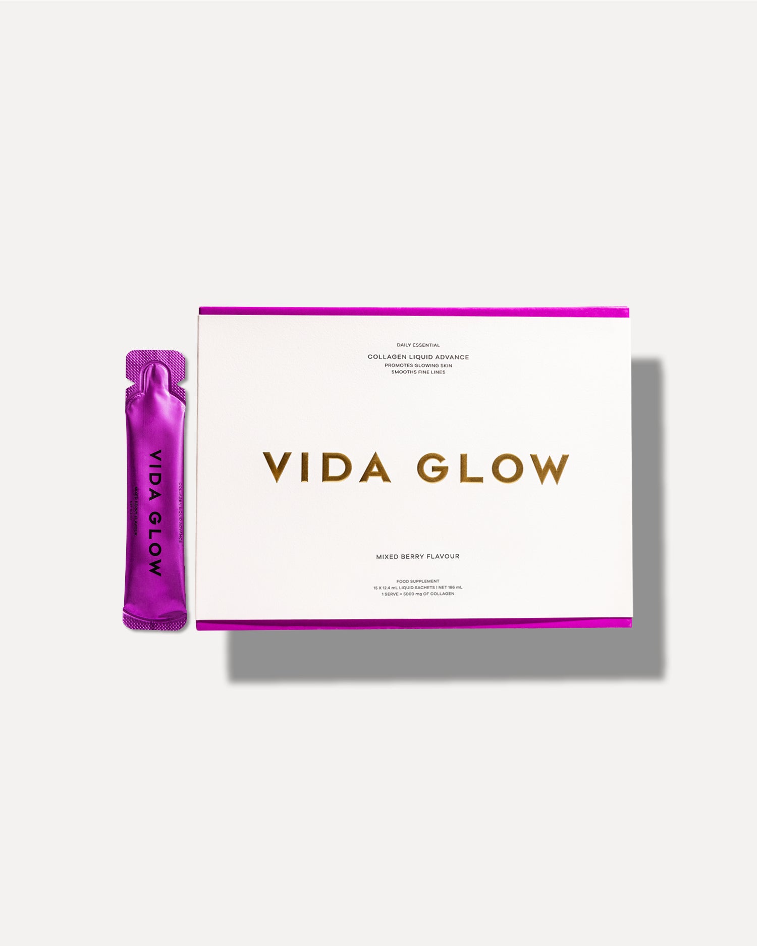 Collagen Liquid Advance est un supplément de peptides de collagène à plus forte dose dans un liquide biodisponible et délicieux au goût de baies. Formulé avec 5 g de collagène marin naturel cliniquement prouvé de Vida Glow, le complexe antioxydant B-Blend4 et la vitamine C pour améliorer la synthèse du collagène - les résultats pour une peau ferme, des cheveux épais et des ongles forts sont suralimentés.