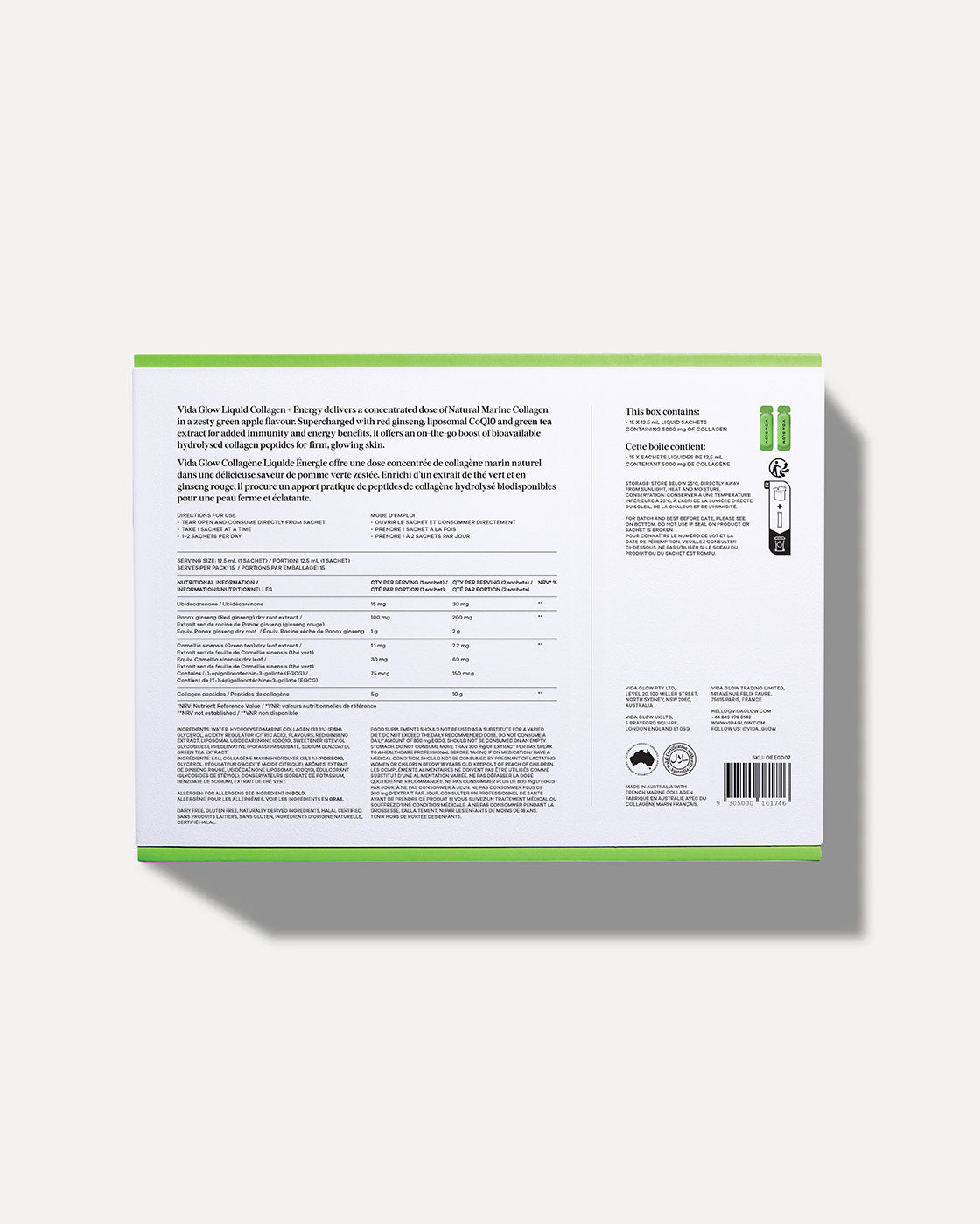 Si vous avez des questions concernant votre commande, nous vous encourageons à contacter hello@vidaglow.com.